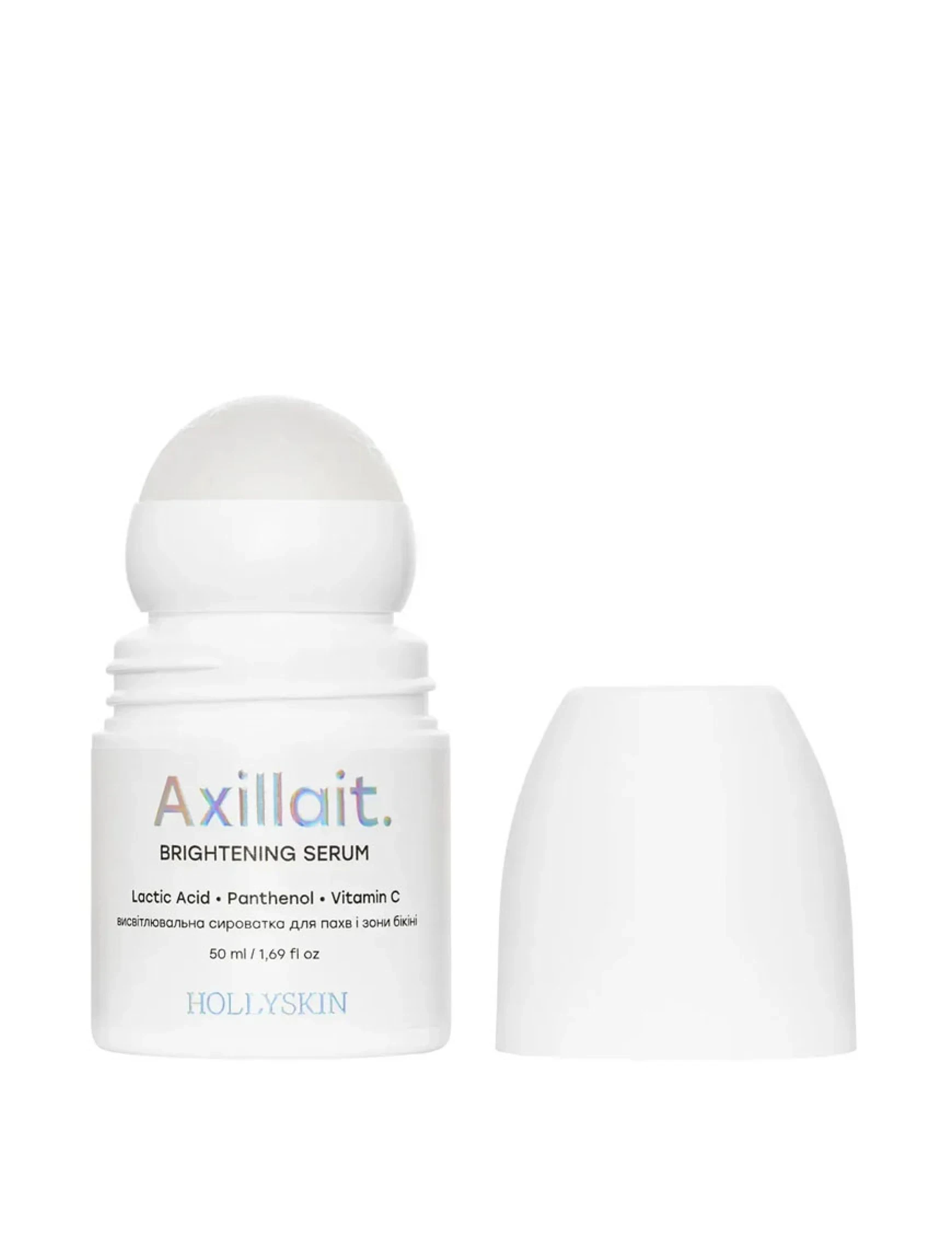 Висвітлювальна сироватка для пахв та зони бікіні Axillait. – це ефктивний засіб, який бореться з делікатними в інтимних зонах тіла. А саме: усуває пігментацію, висвітлює темні ділянки шкіри, відлущує ороговілий шар клітин і відновлює гідроліпідний баланс. Натуральні екстракти зволожують, пом’якшують і помітно покращують тон і текстуру. Пантенол сприяє активній регенерації і оновленню клітин шкіри. Молочна кислота додатково пом'якшує, зволожує і підтримує рН. 3-гліцерил аскорбат (стабільна похідна вітаміну С) має підвищені висвітлювальні та антиоксидатні властивості, які сприяють уповільненню старіння шкіри, усуненню пігментних плям. Гідролат троянди делікатно зволожує і тонізує шкіру, заспокоює її, вирівнює тон і мікрорельєф, пришвидшує оновлення і запобігає передчасному старінню. Молочна кислота делікатно зволожує шкіру, помітно розгладжує її, вирівнює тон, заспокоює, підтримує рН. Пантенол зволожує шкіру, заспокоює подразнення, сприяє загоєнню мікропошкоджень, зміцнює бар’єрні функції шкіри, повертає м'якість і еластичність. Екстракт центели азійської заспокоює шкіру, сприяє загоєнню мікропошкоджень і запалень, відновлює і зміцнює захисний бар'єр. Екстракт шоломниці має потужну антиоксидантну дію. Екстракт драконового плоду живить, розгладжує і висвітлює шкіру, надає їй природного сяяння. Екстракт зеленого чаю має протизапальну й антисептичну дії, усуває почервоніння. Екстракт кореня солодки усуває набряки, підтягує, покращує колір обличчя. Екстракт барбарису зволожує, пом'якшує шкіру, робить її особливо ніжною на дотик. Екстракт розмарину тонізує, відновлює, сприяє загоєнню мікропошкоджень.