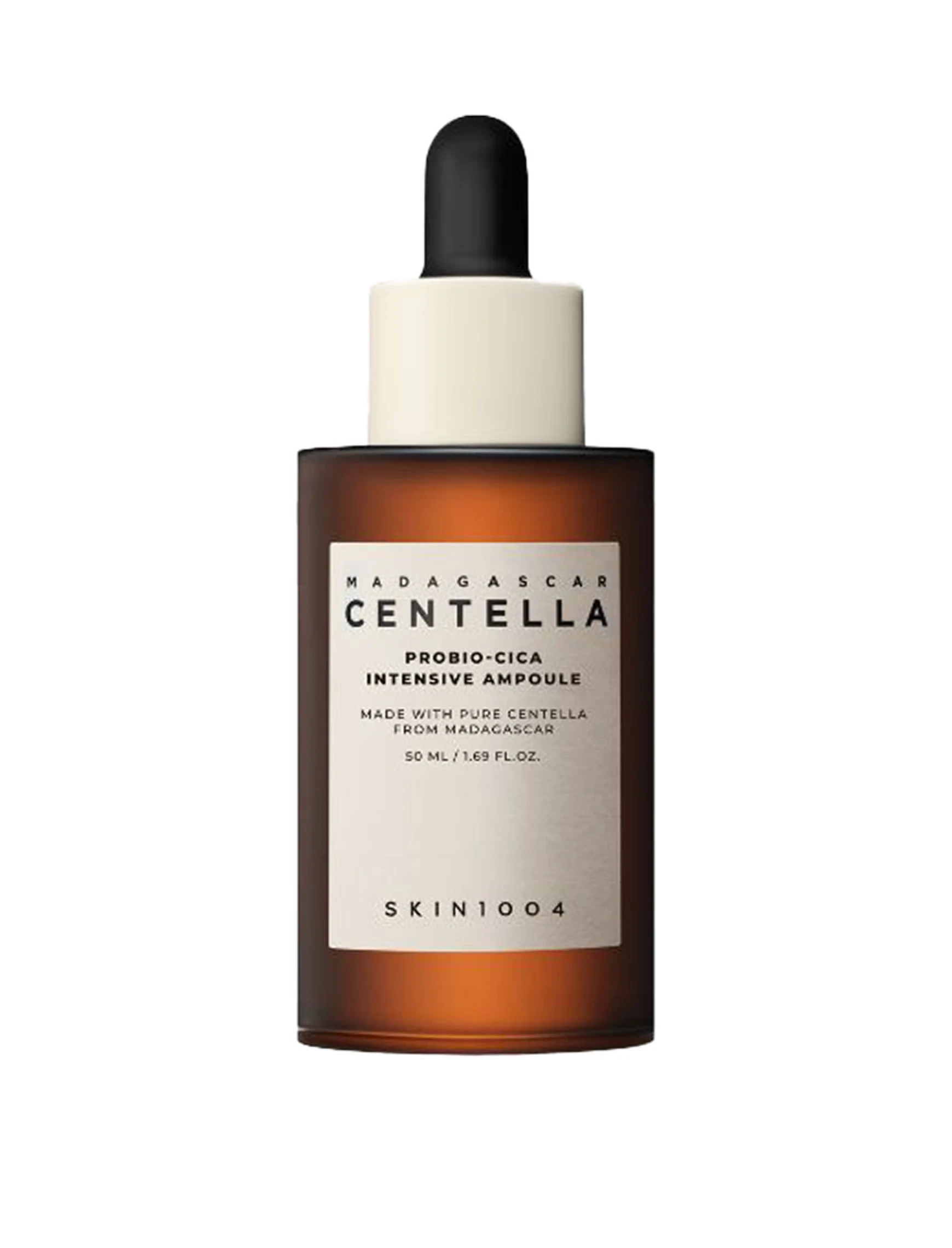 SKIN1004 - Madagascar Centella Probio-Cica Intensive Ampoule - ця сироватка для обличчя є професійним засобом, який зволожує, регенерує і зміцнює шкіру. Містить екстракт центелли азіатської, який інтенсивно зволожує шкіру, стимулює регенерацію і має протизапальну дію. Додатково ніацинамід регулює виділення шкірного сала, має протизапальну дію і освітлює шкіру, а гіалуронат натрію глибоко зволожує, розгладжує і підтягує її. Алантоїн заспокоює подразнення, а цераміди регенерують і зволожують шкіру.
