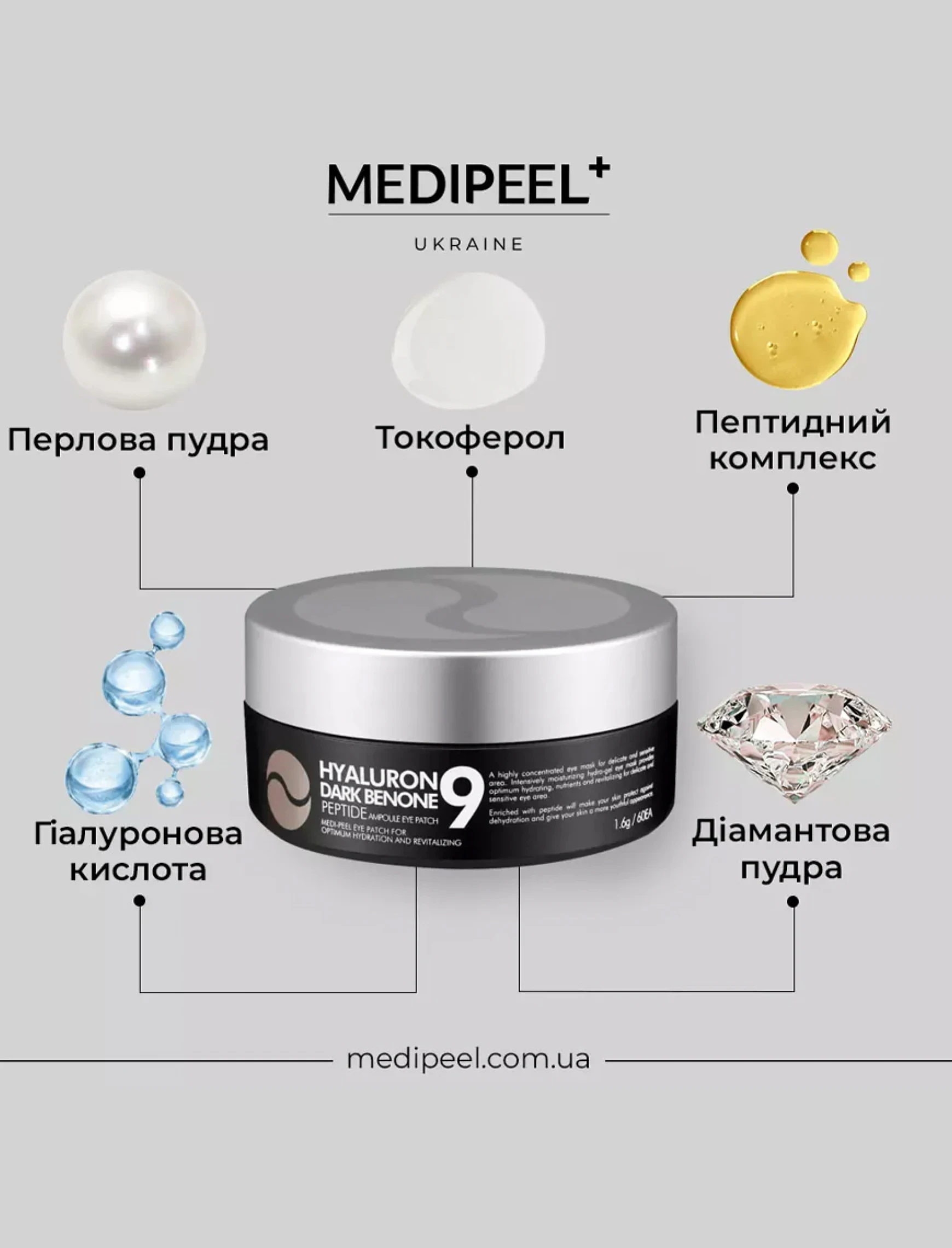 АртикулMedi-Peel Освітлюючі патчі з пептидами Hyaluron Da
