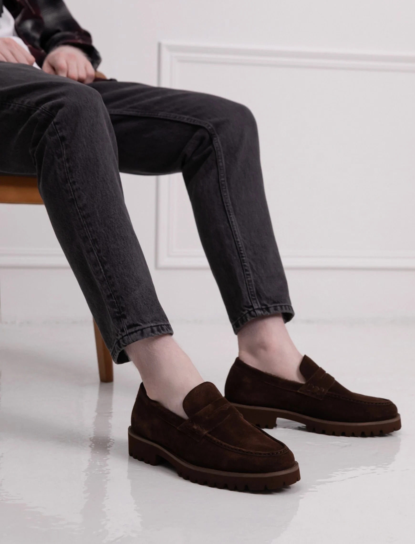 Еще нет отзывов о товаре Мужские туфли лоферы замшевые коричневые