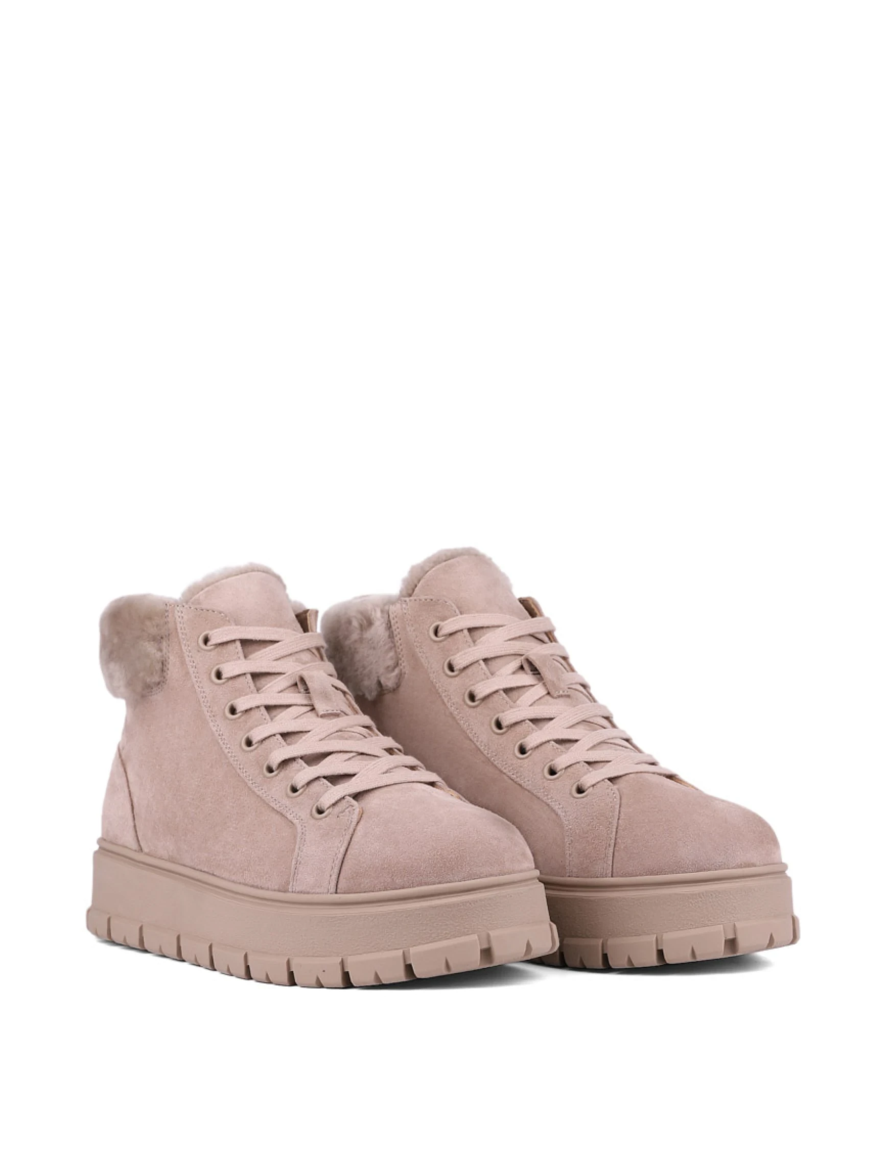 Женские ботинки MIRATON велюровые бежевые с подкладкой из натурального меха