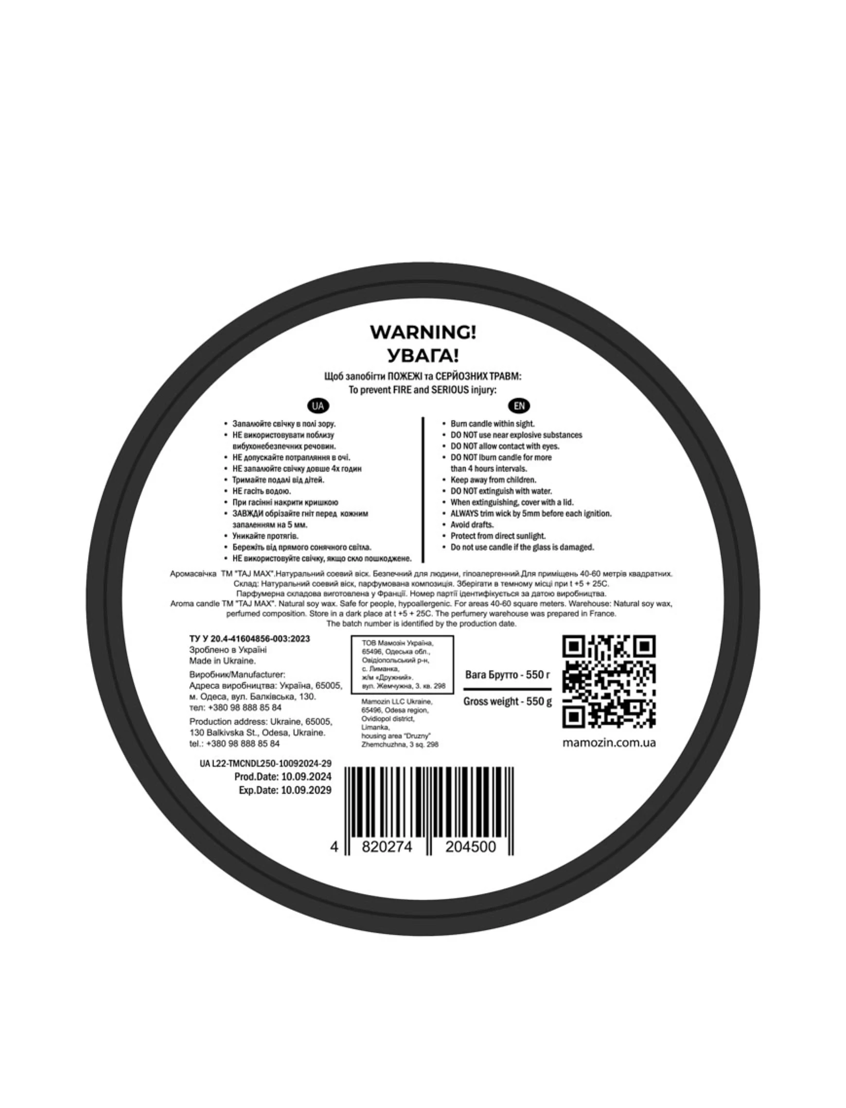 АртикулАромасвеча Taj Max 250 г "Qatar" black
