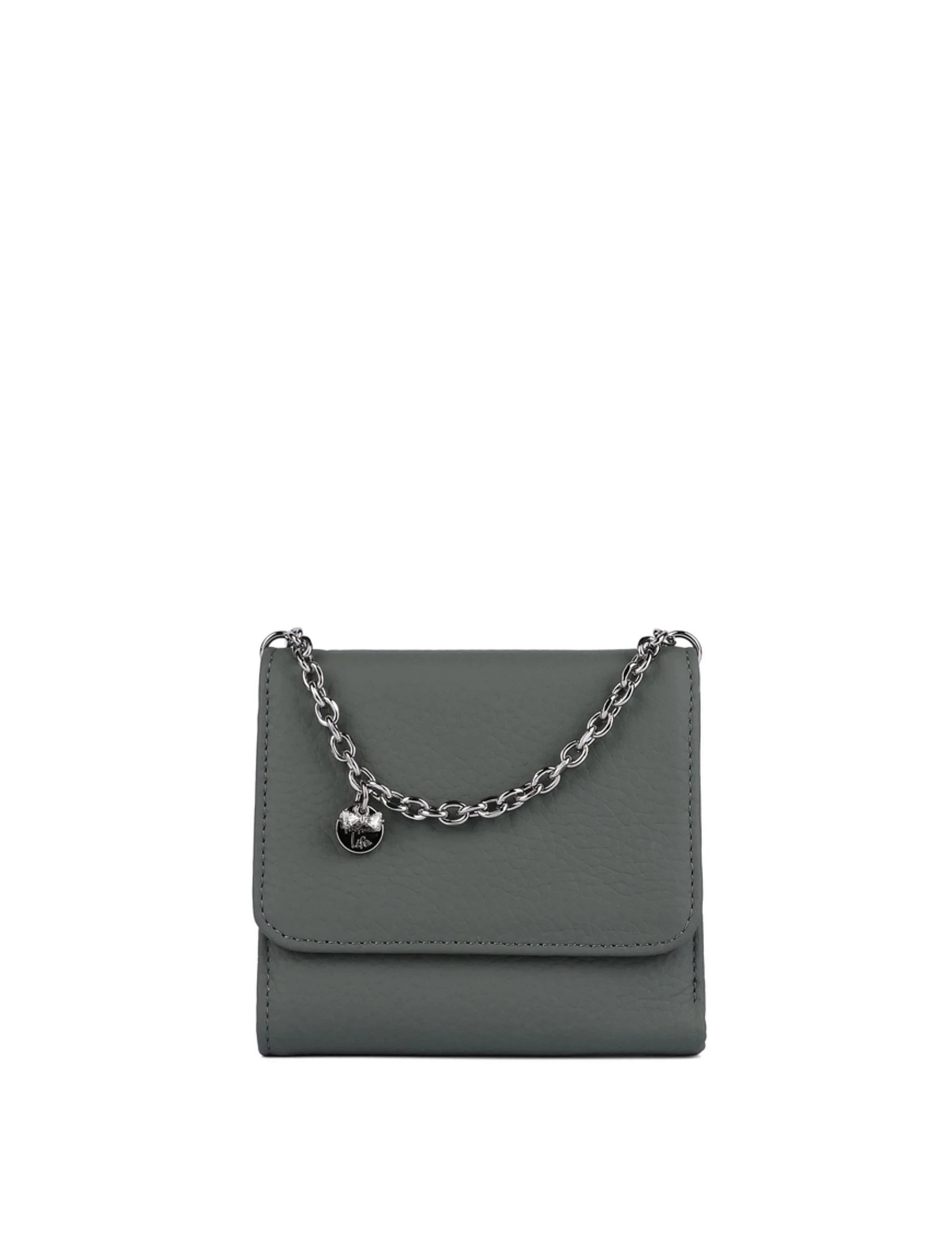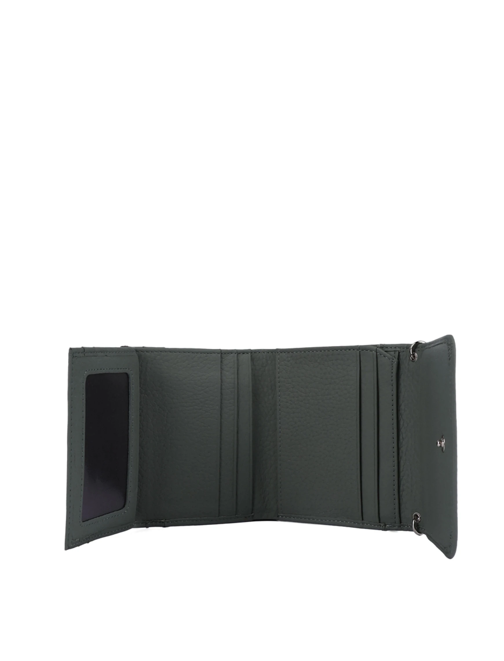 Кошелек на кнопке кожаный зеленый с цепочкой