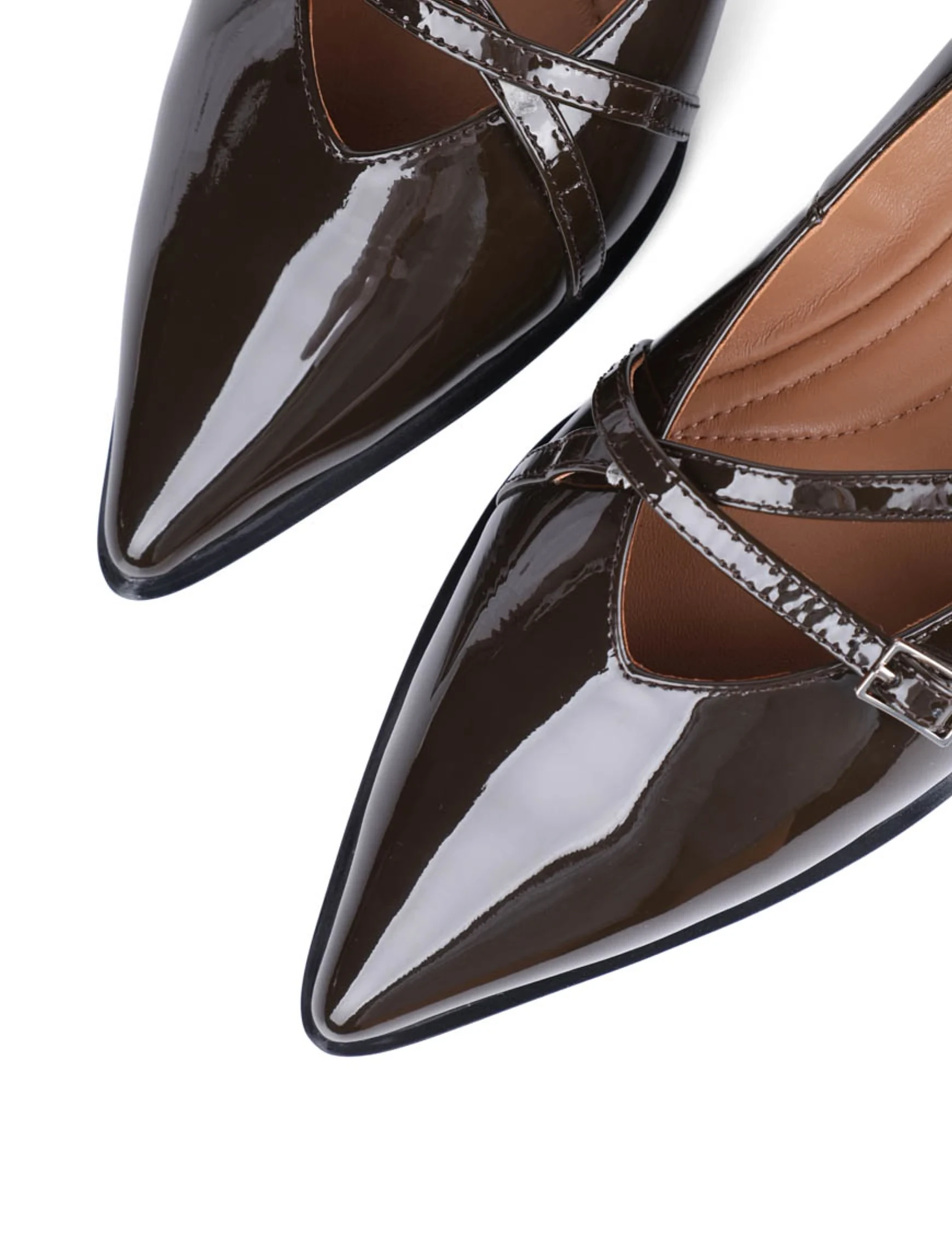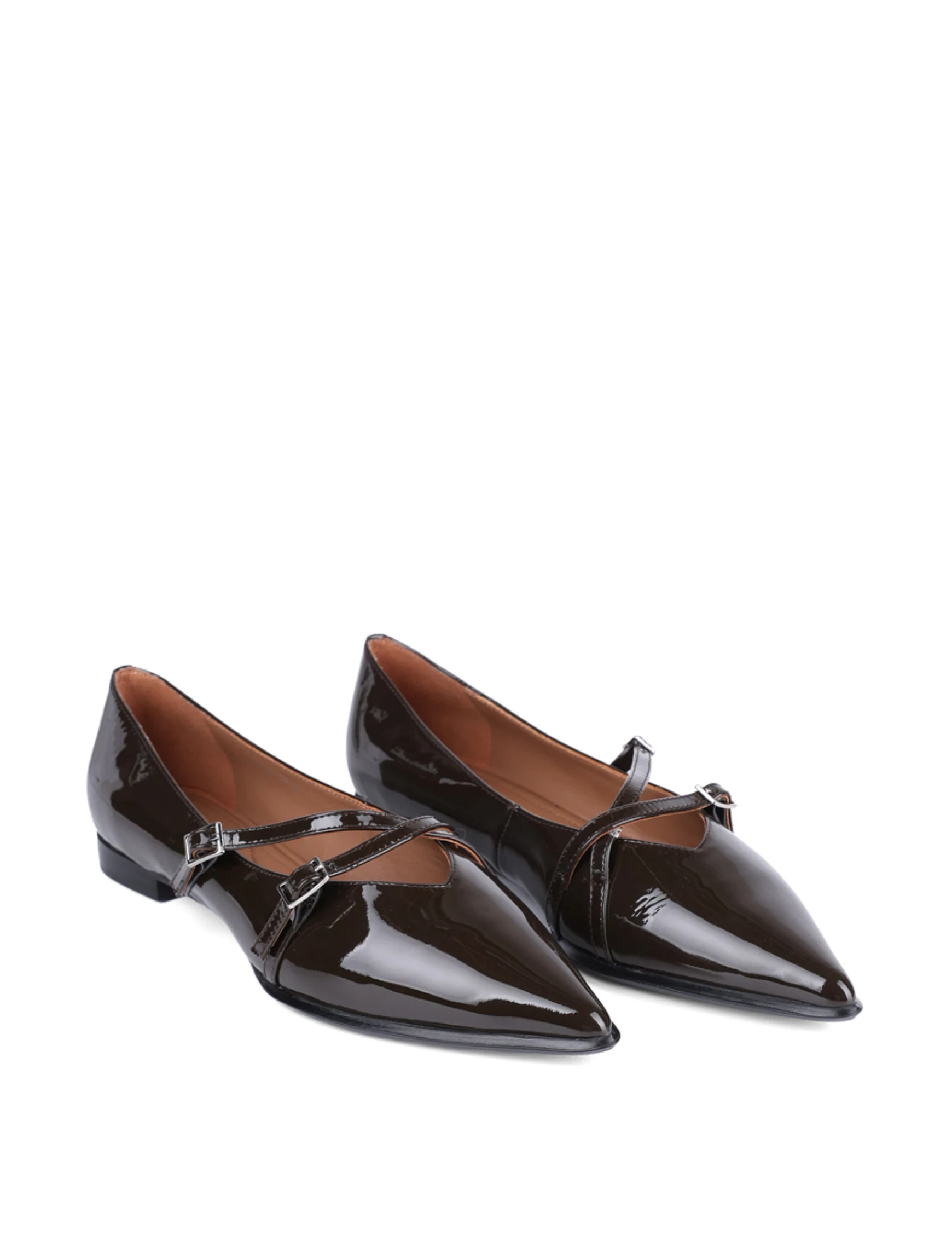 Женские балетки MIRATON лаковые коричневые