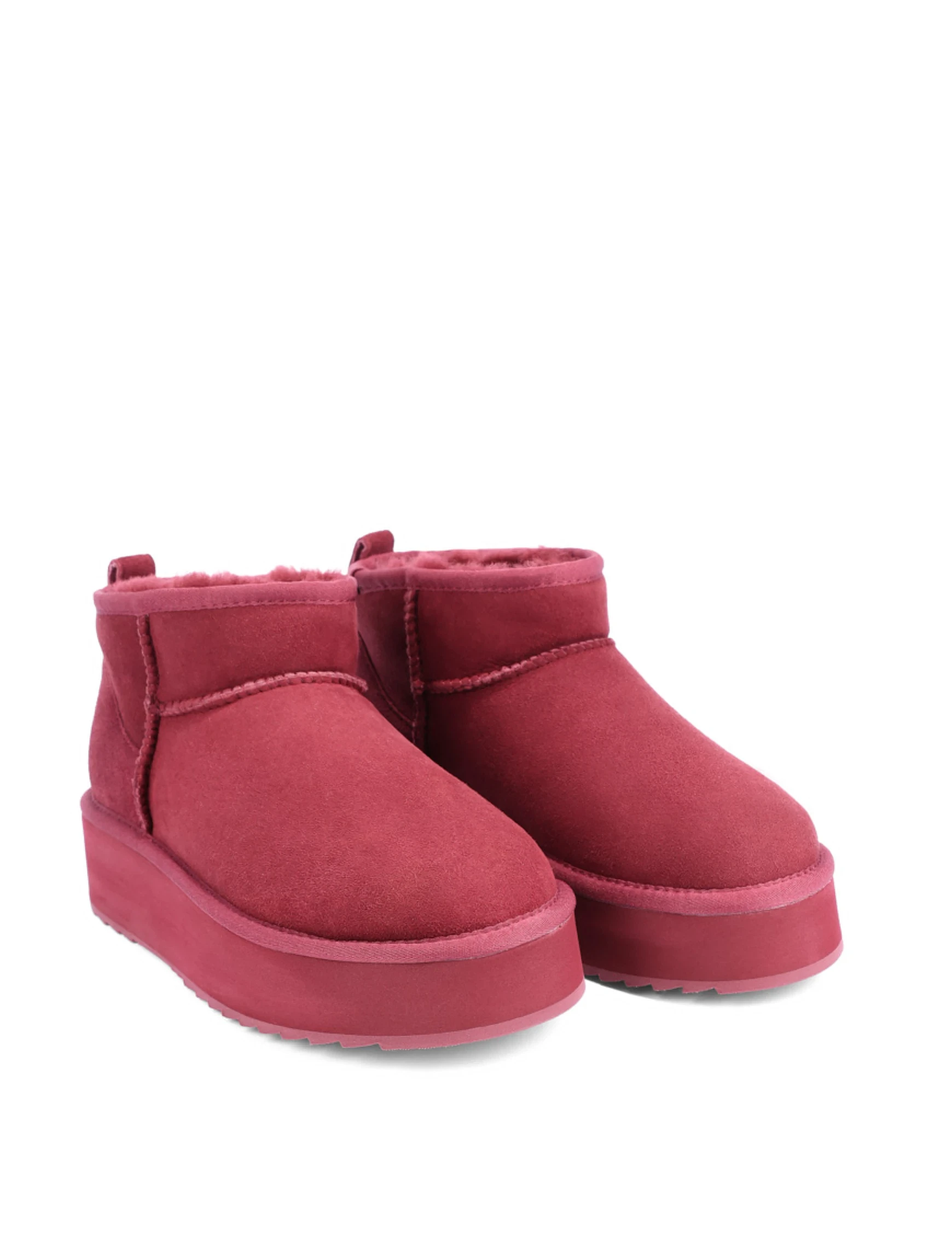 Женские угги из дубленки бордовые