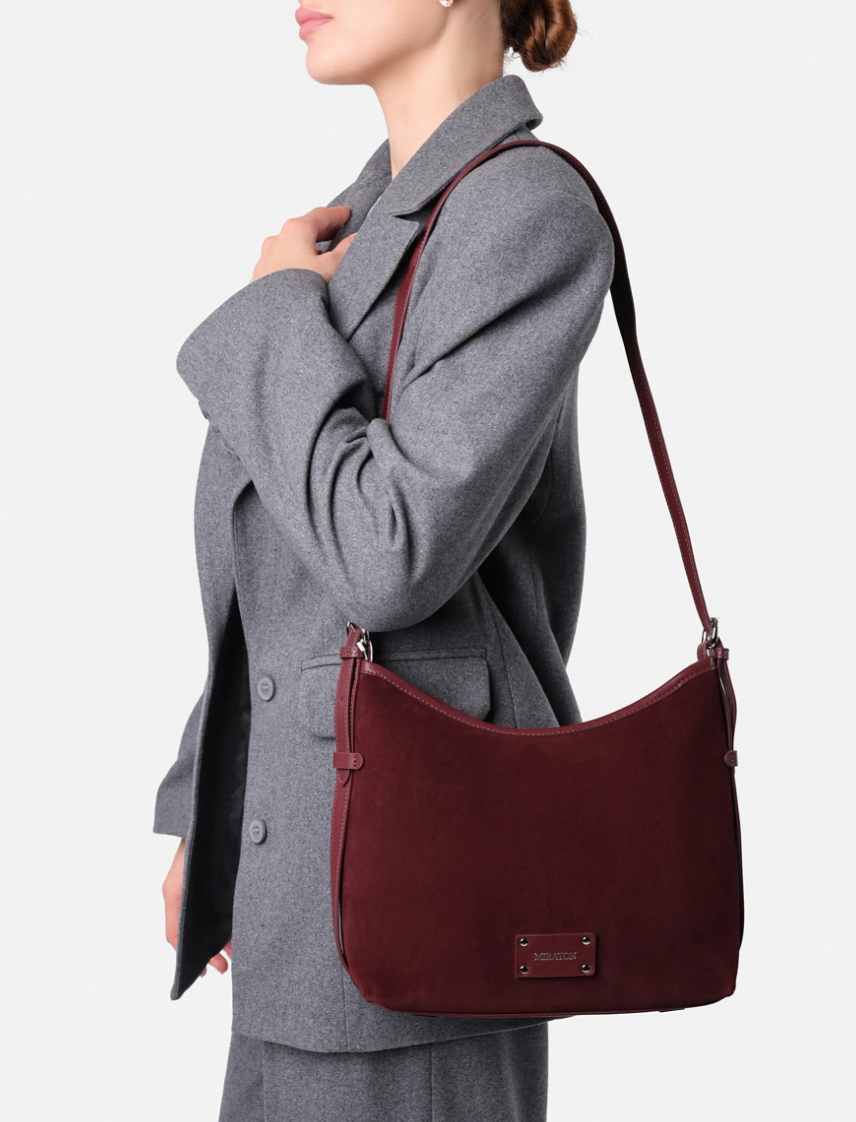 Женская сумка хобо MIRATON замшевая бордовая