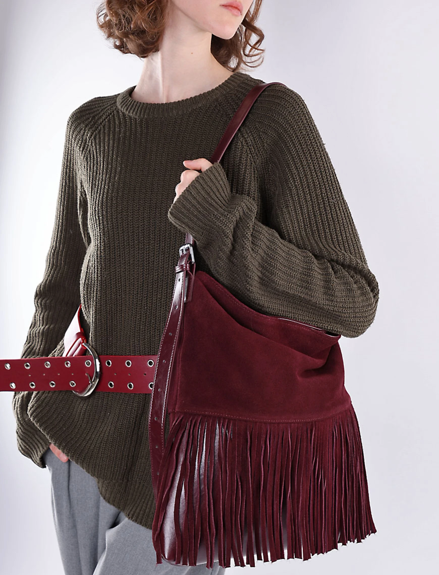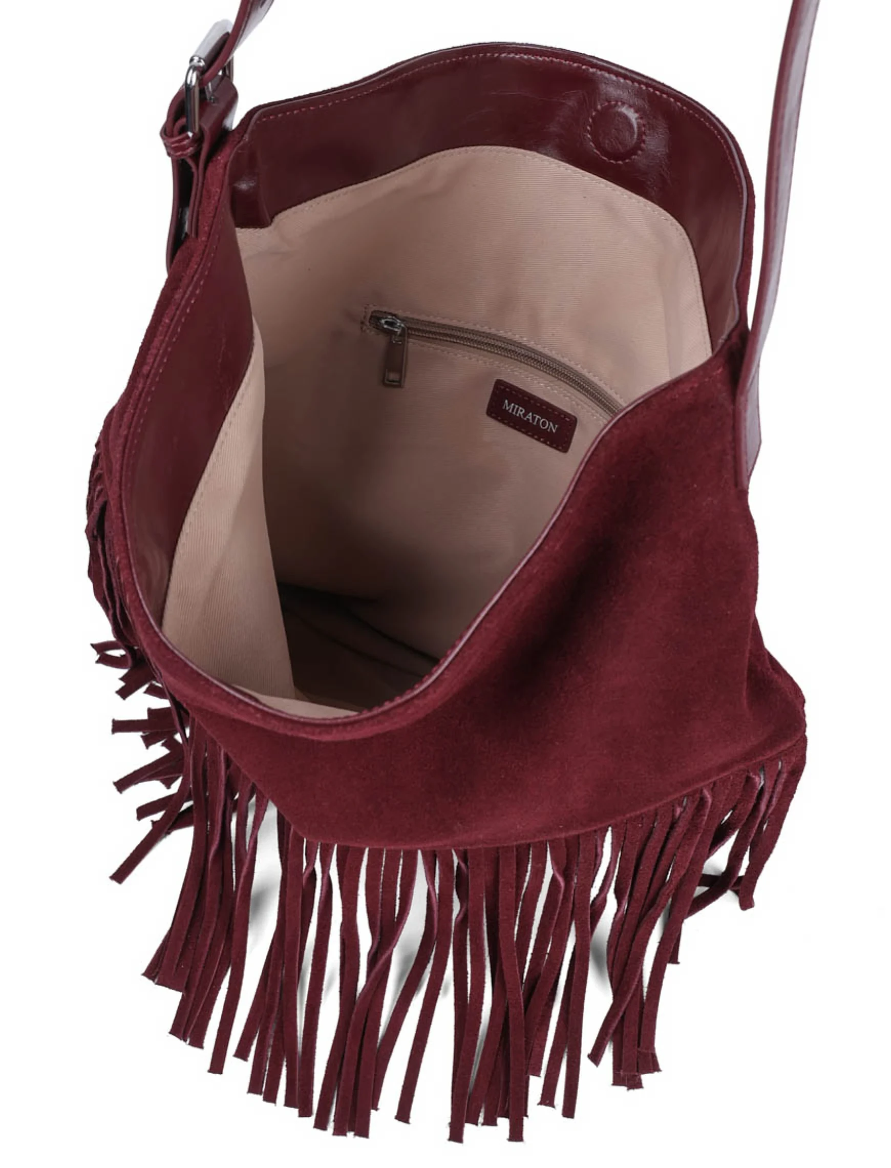 Еще нет отзывов о товаре Женская сумка хобо MIRATON замшевая бордовая