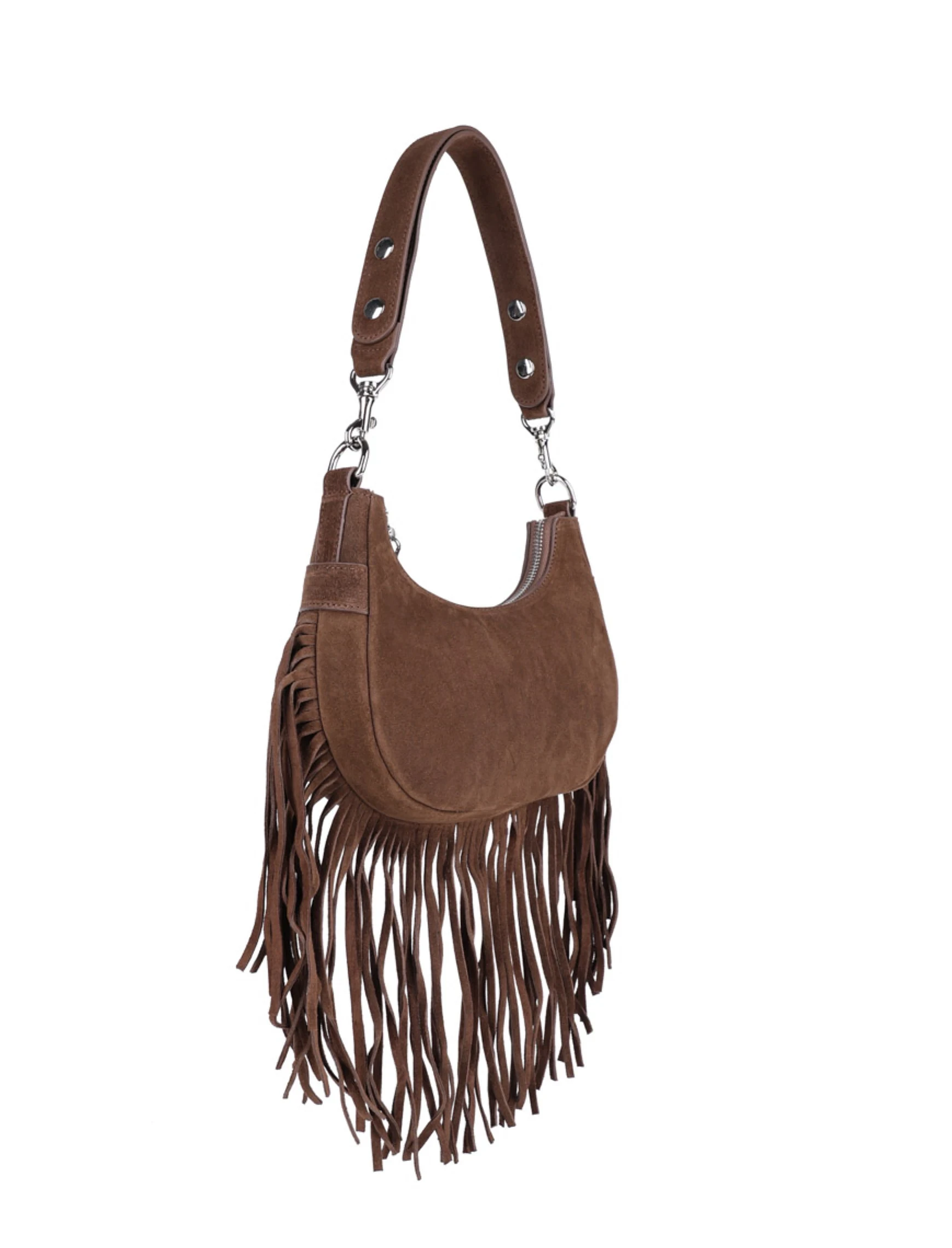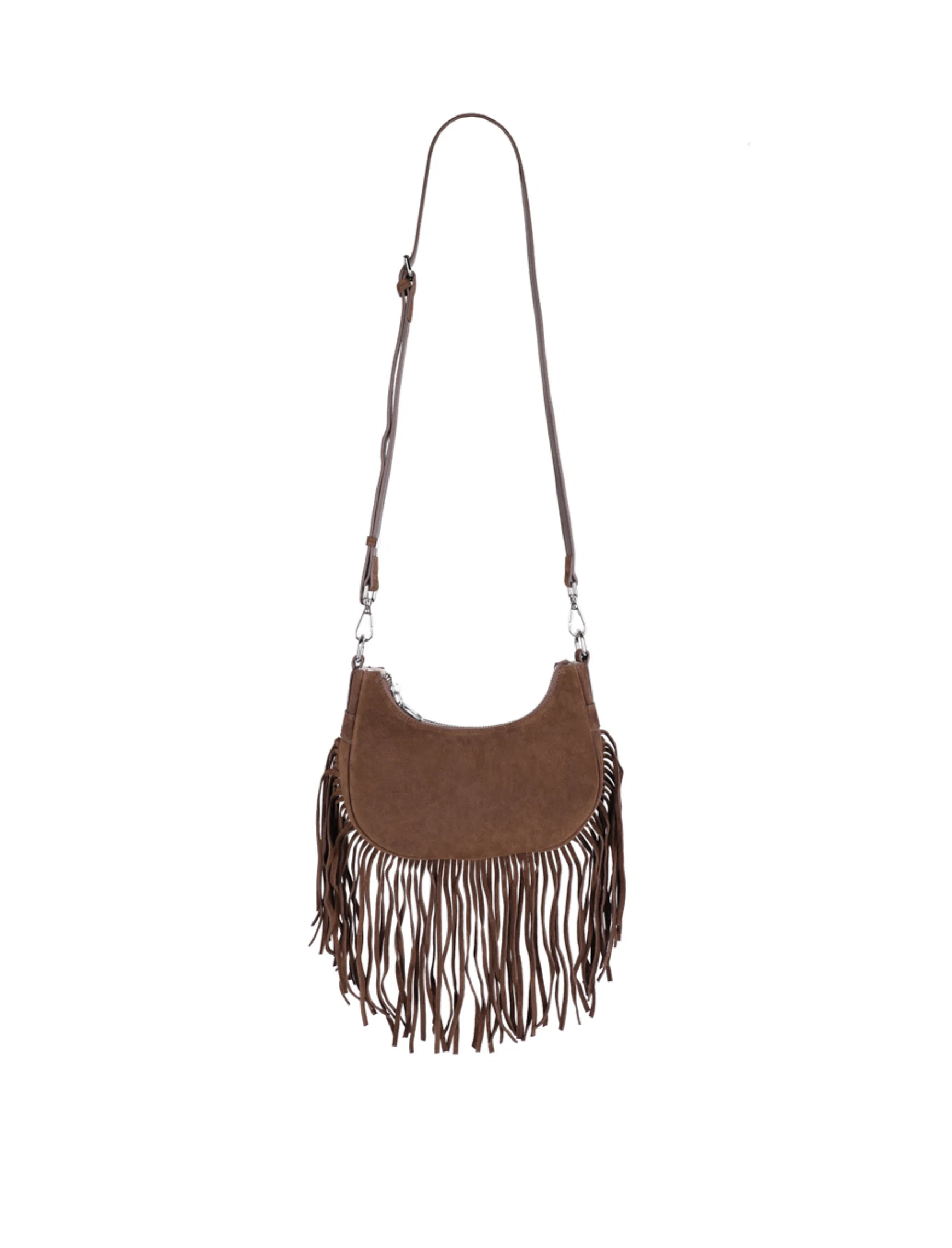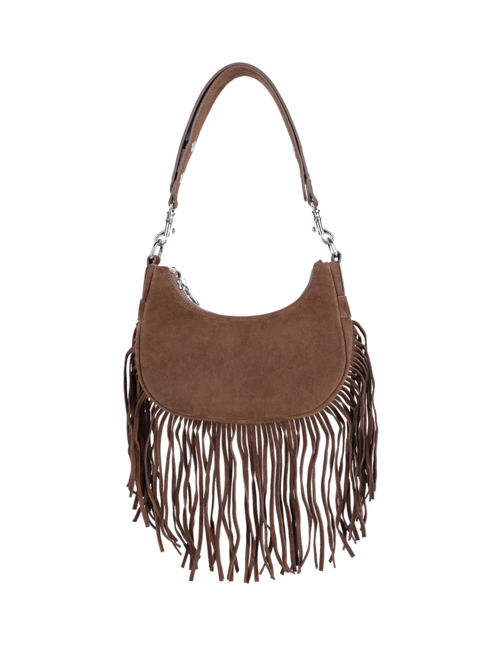 Женская сумка через плечо замшевая коричневая