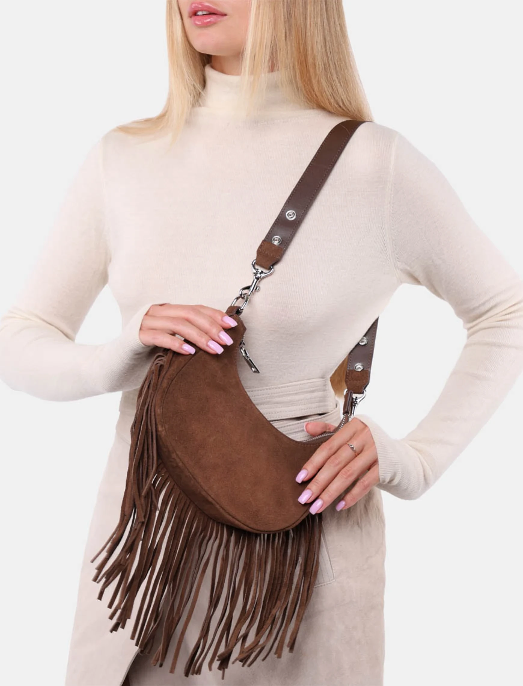 Еще нет отзывов о товаре Женская сумка через плечо замшевая коричневая