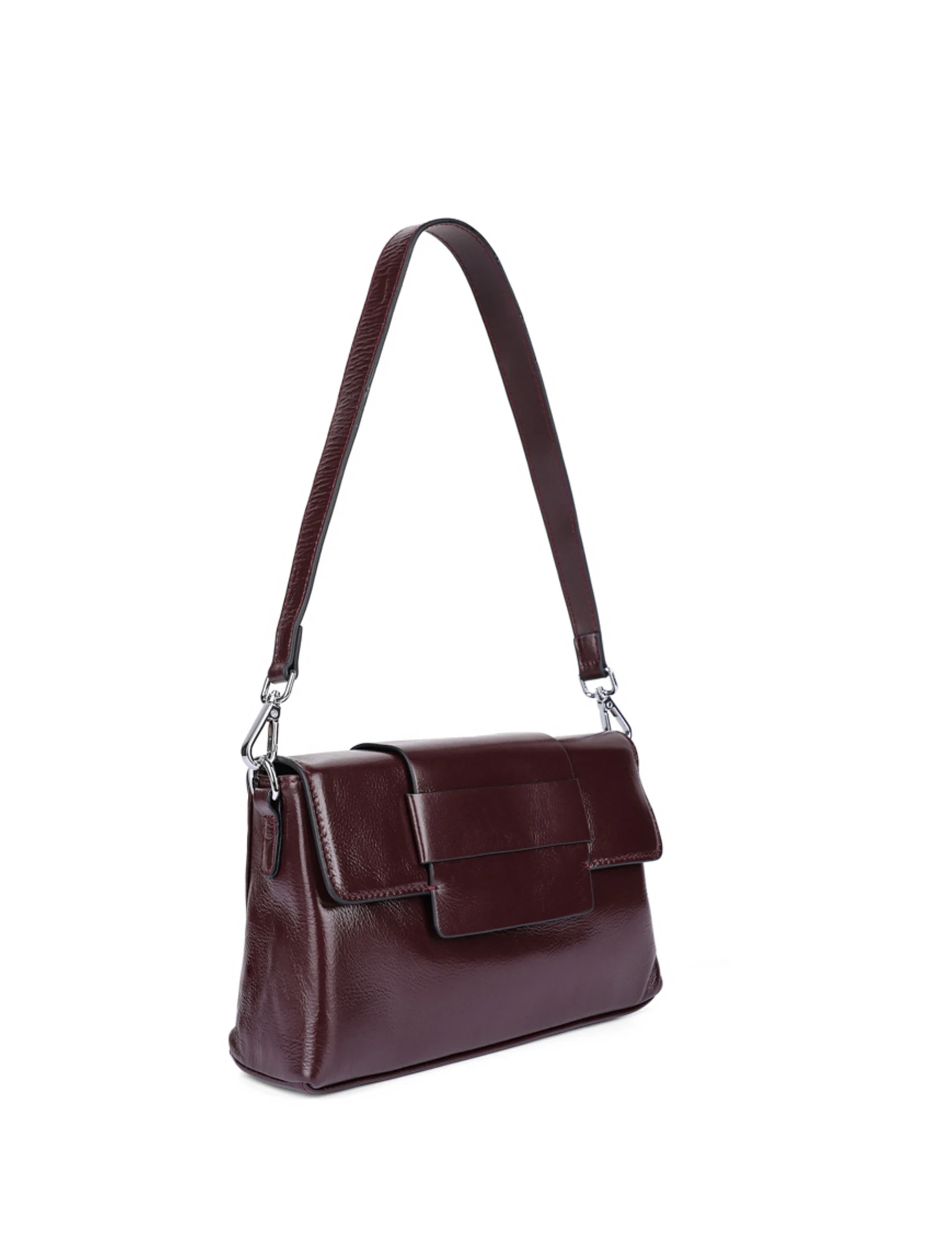 Женская сумка через плечо кожаная бордовая