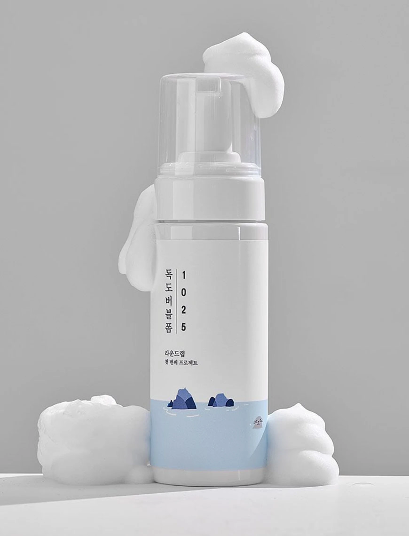 Cлабокислотна пінка для вмивання (pH 5) з морською водою ROUND LAB 1025 Dokdo Bubble Foam підходить для очищення шкіри від бруду, пилу, залишків макіяжу, надлишків себуму та мертвих клітин. Амінокислотні поверхнево-активні речовини у складі засобу є найм’якшими, мають гіпоалергенні та некомедогенні властивості, не закупорюють пори на шкірі, не провокують появу сухості та стягнутості, зберігаючи шкіру зволоженою навіть після вмивання. М’які мікробульбашки формують густу пінку, дбайливо очищують шкіру, не травмують, не викликають запалення. Пінка належить до функціональної косметики для проблемної шкіри з акне, що затверджено сертифікатом Ministry of Food and Drug Safety в Кореї. Може застосовуватись для чутливої шкіри.