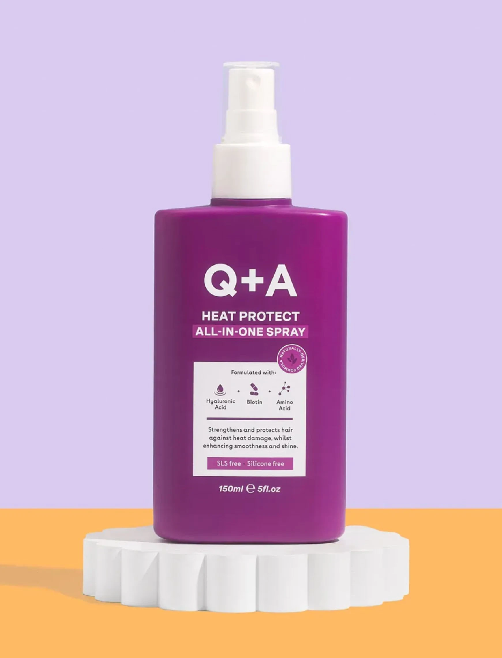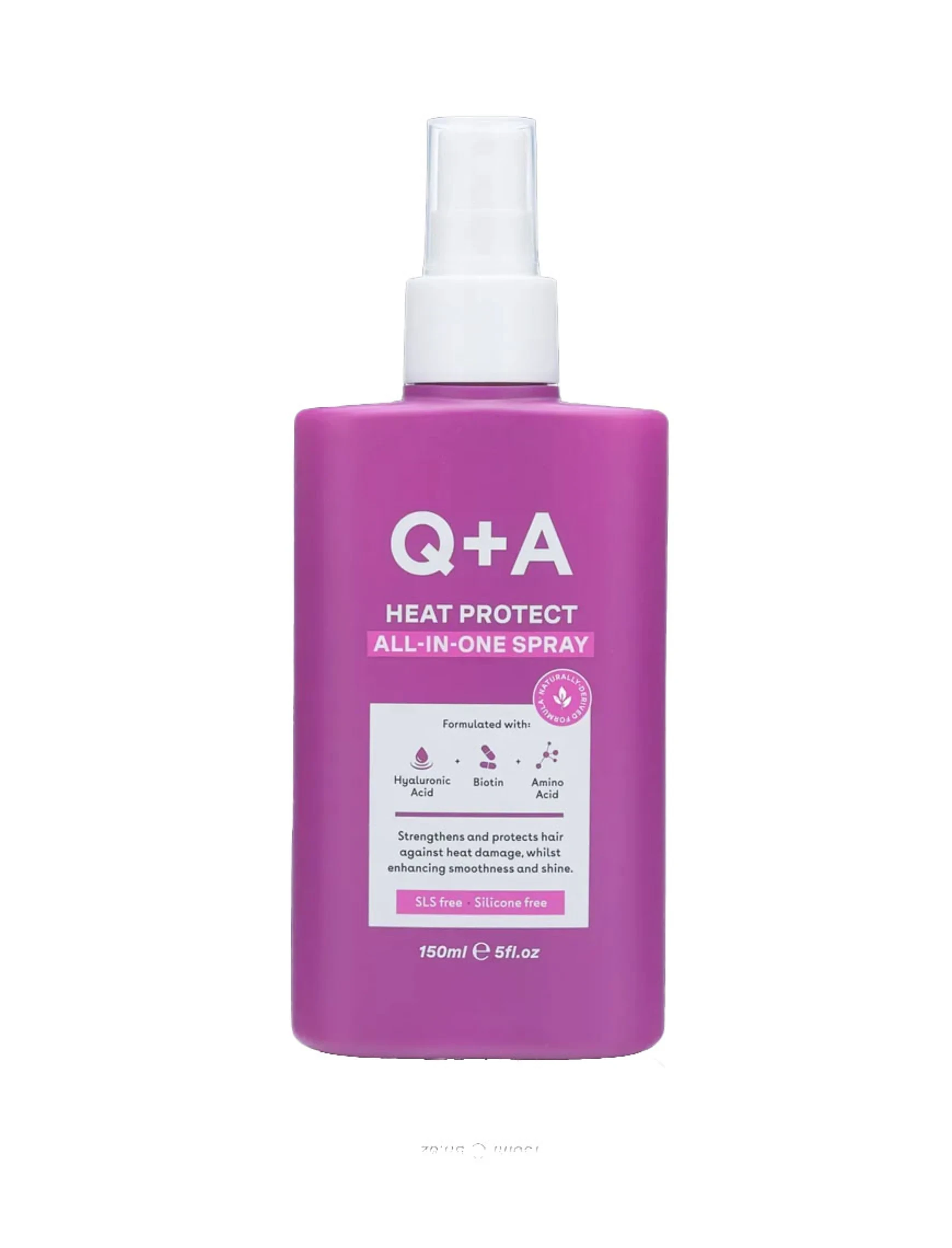 Особливості Q+A Heat Protect All-in-One Spray: - без силіконів; - не тестується на тваринах; - без SLS (лаурилсульфат натрію); - дерматологічно протестований; - 100% пакування придатне до вторинної переробки; - має у складі амінокислоти, біотин, гіалуронову кислоту; - підходить для всіх типів волосся; - захищає волосся від високих температур; - усуває пухнастість; - відновлює волосся.