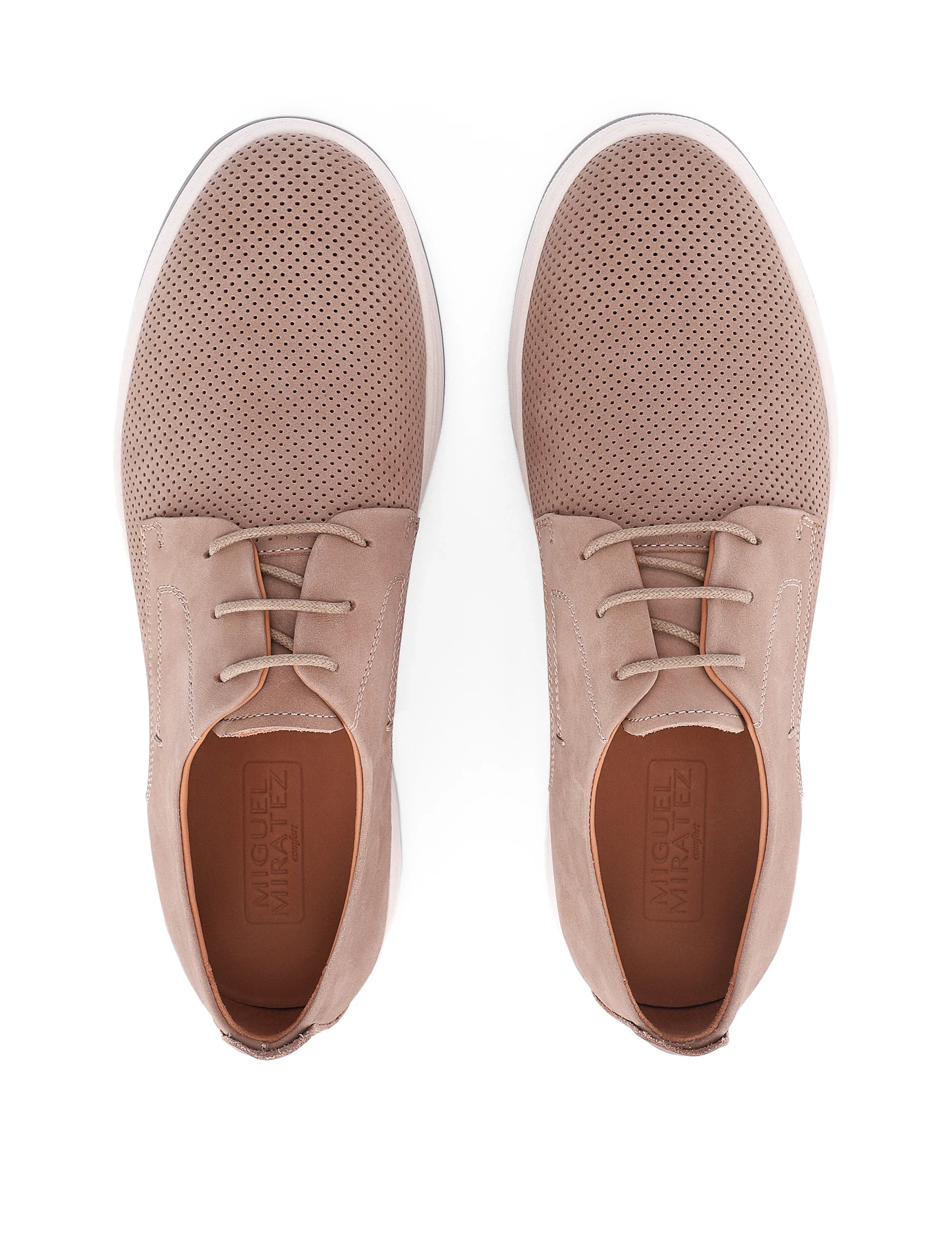 Португальський бренд Miguel Miratez випускає якісне взуття, яке виготовляють із преміальних матеріалів. Основна концепція бренду – відображення сучасних трендів поряд із бездоганною якістю. При розробці приділяється багато уваги якості матеріалів: зносостійка підошва, дорога м'яка шкіра, якісна фурнітура.