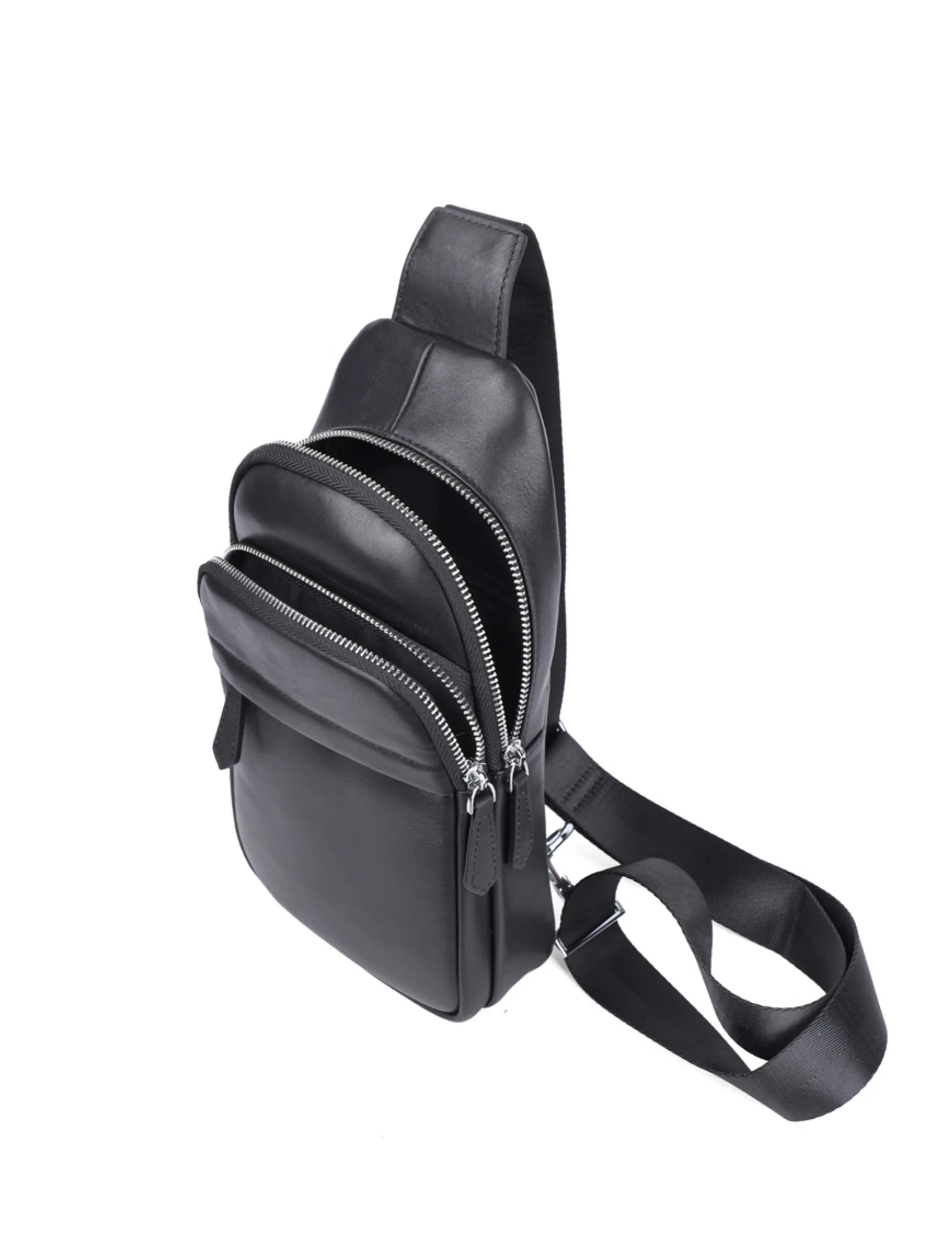 Ще немає відгуків про товар Чоловіча сумка слінг MIRATON шкіряна чорна