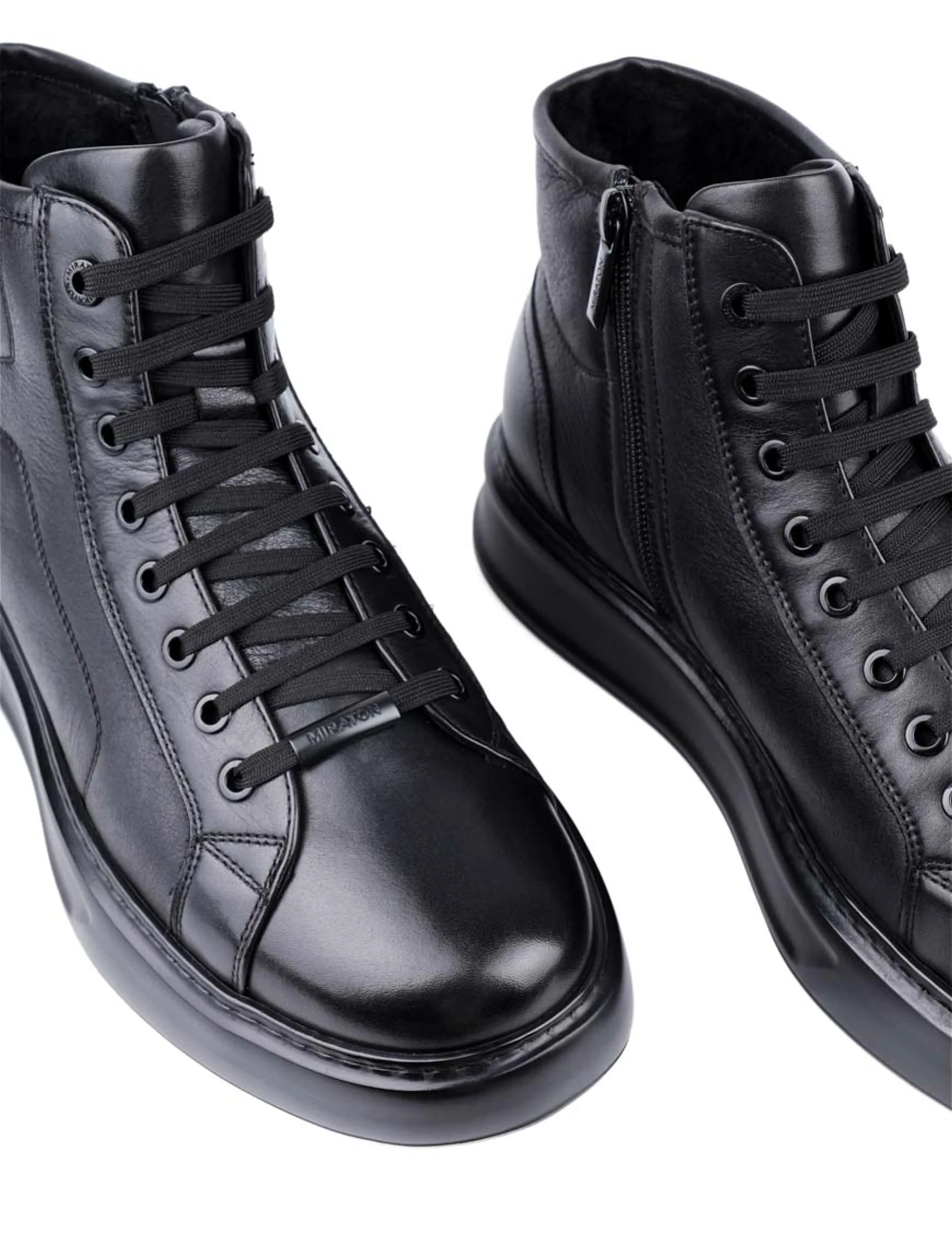 Чоловічі черевики MIRATON шкіряні чорні з підкладкою з натурального хутра