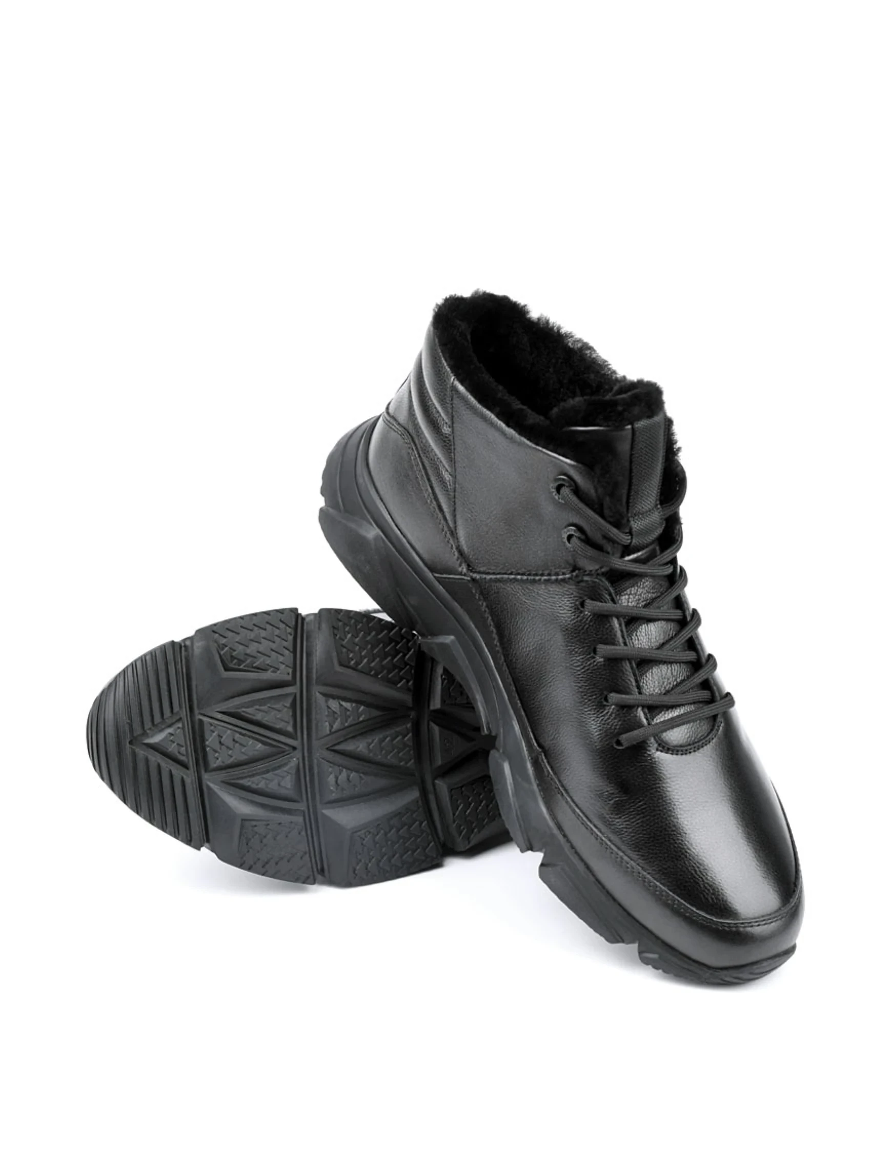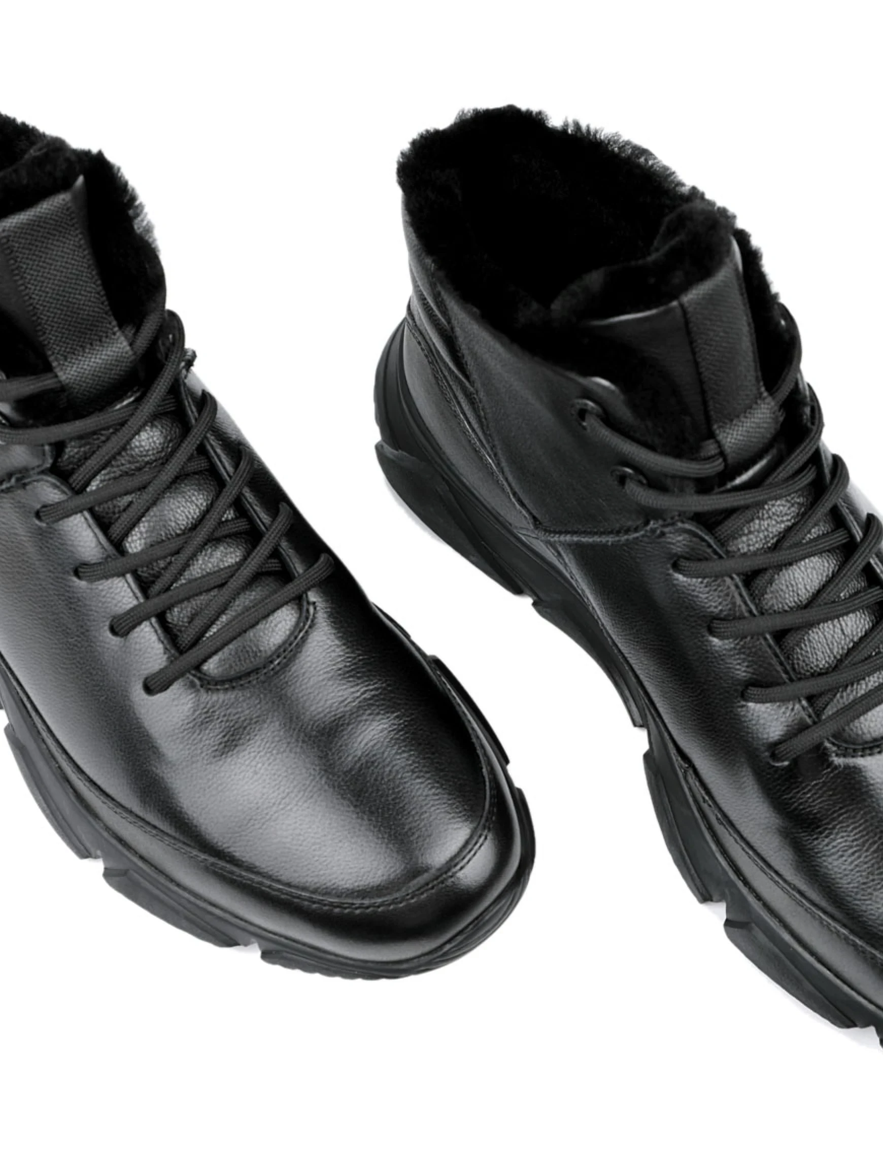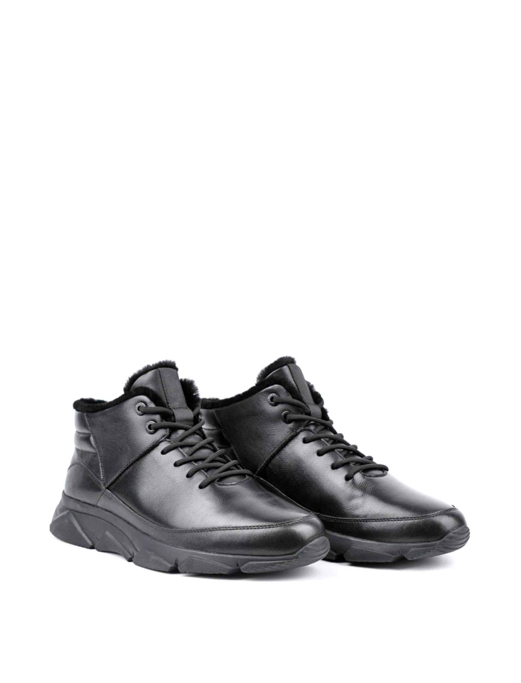 Чоловічі черевики MIRATON шкіряні чорні з підкладкою з натурального хутра