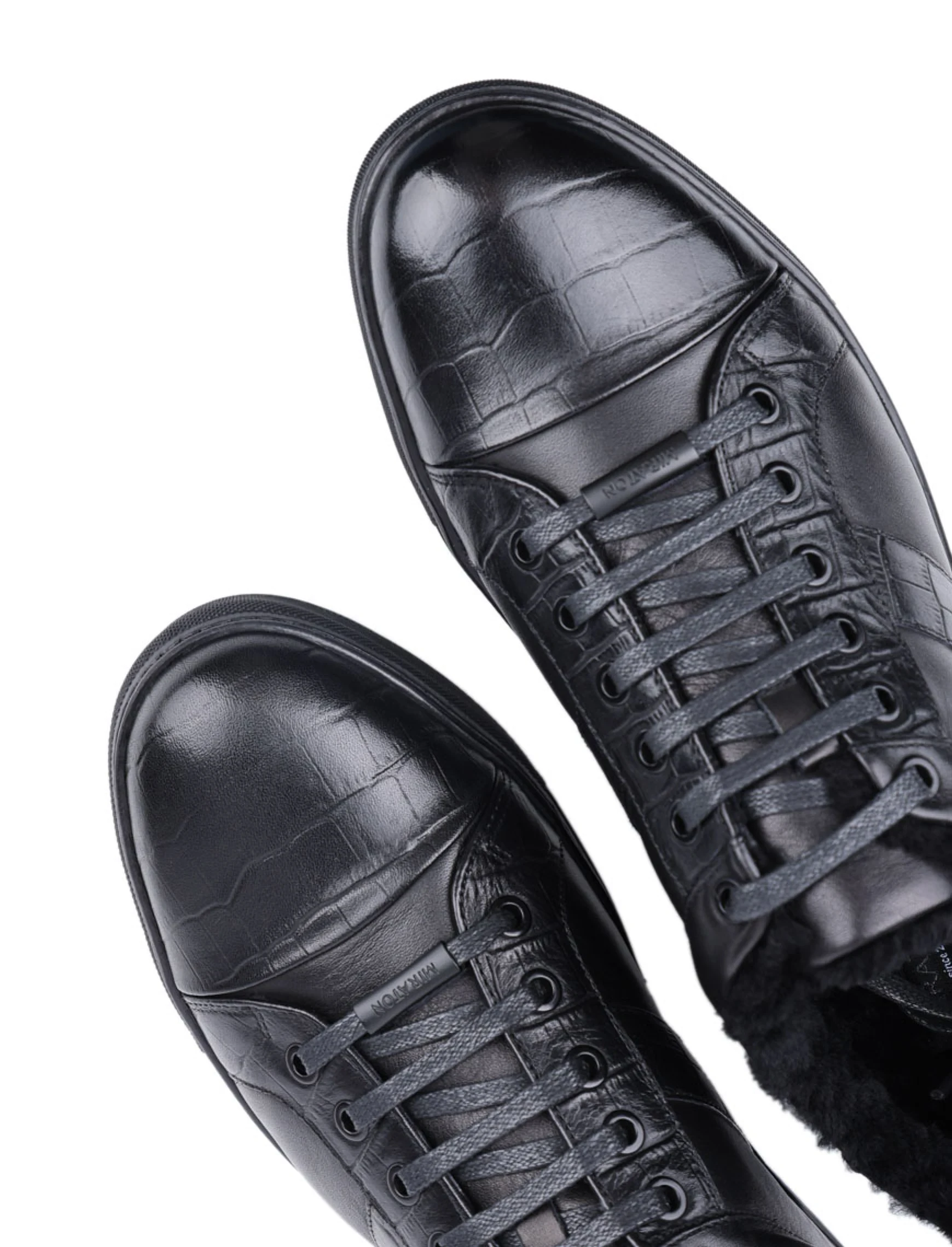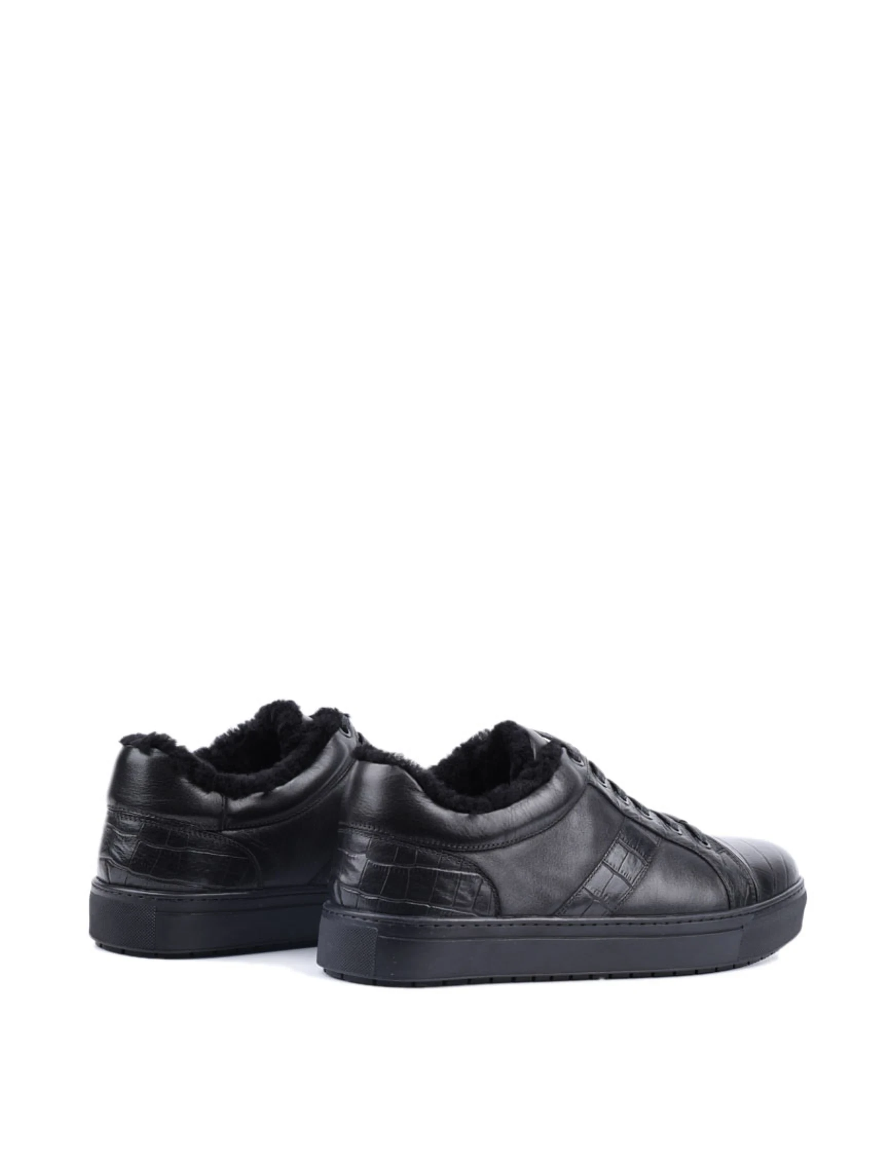 Мужские кеды MIRATON кожаные черные с подкладкой из натурального меха