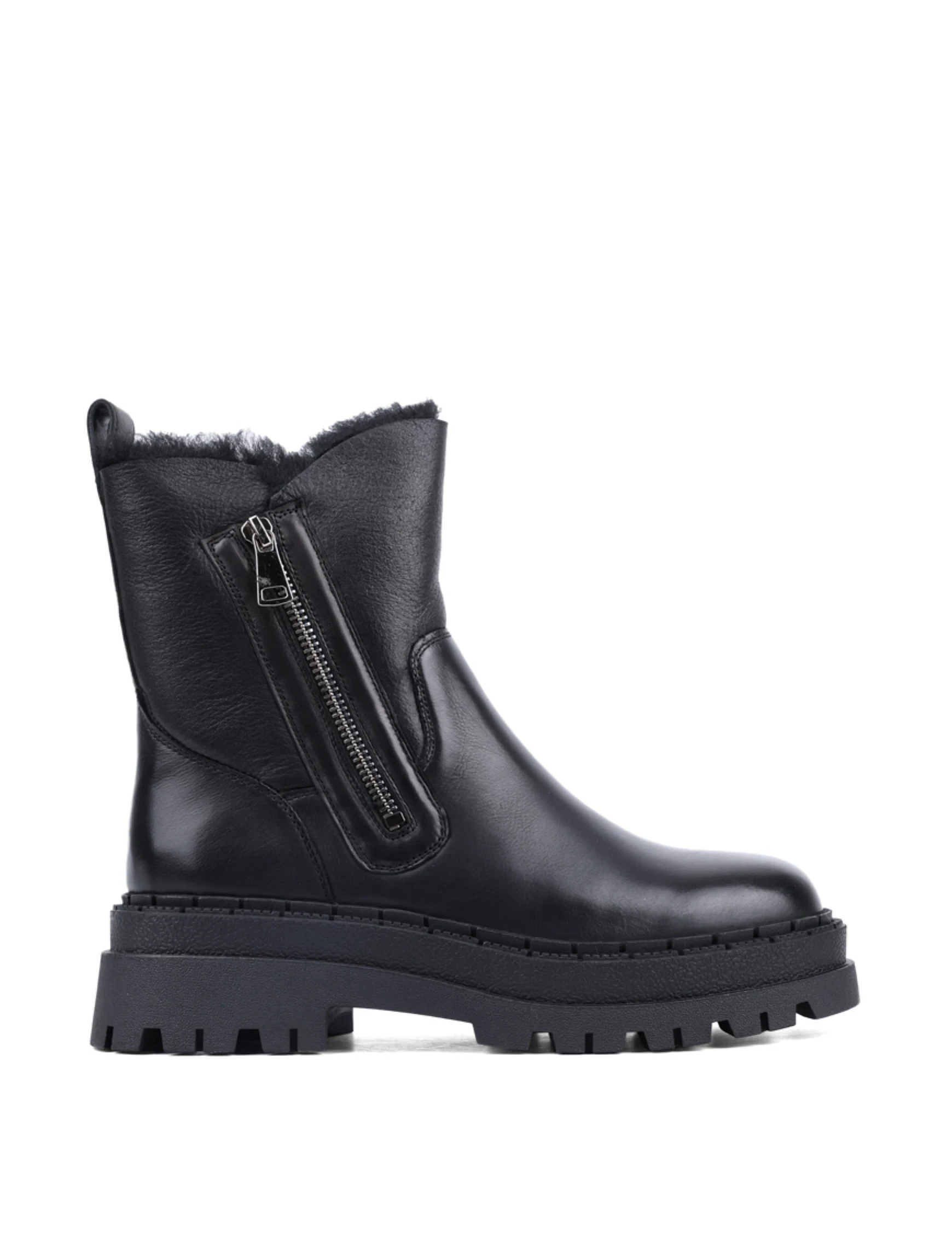 Жіночі черевики Attizzare шкіряні чорні з підкладкою з натурального хутра (NH219-106L-P742M)