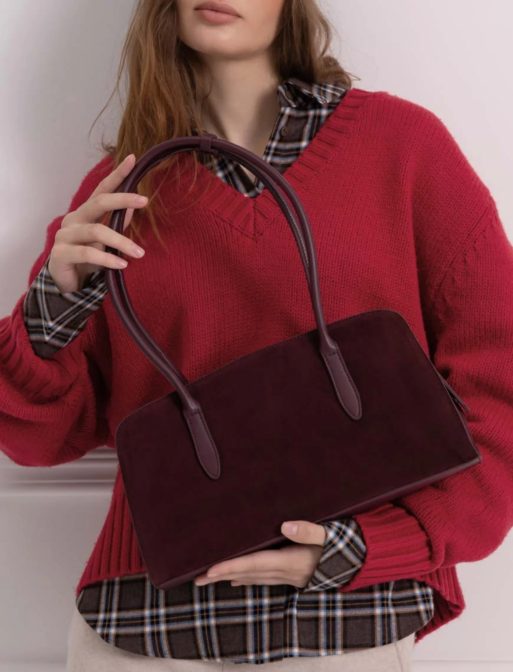 Ще немає відгуків про товар Жіноча сумка через плече замшева бордова